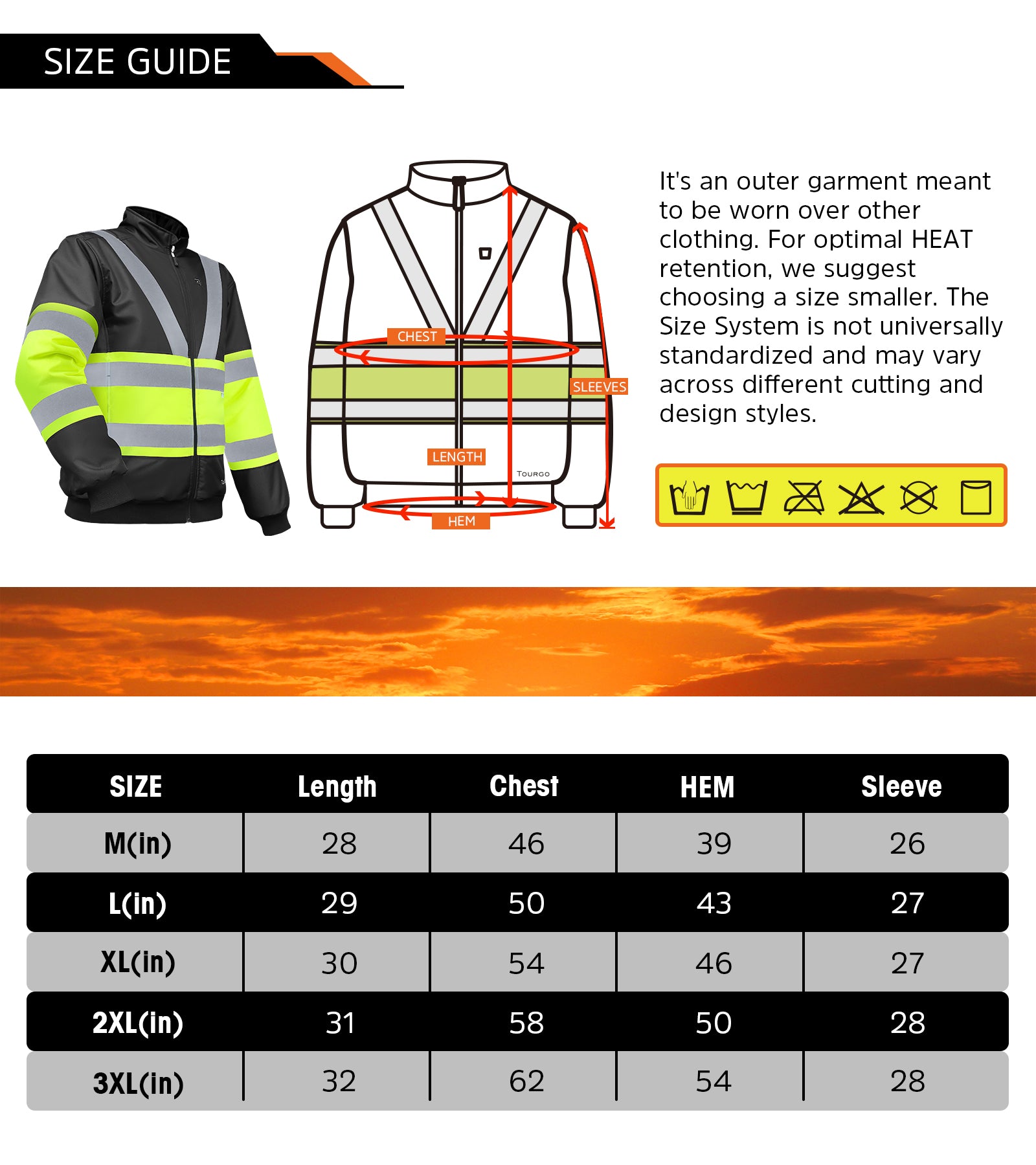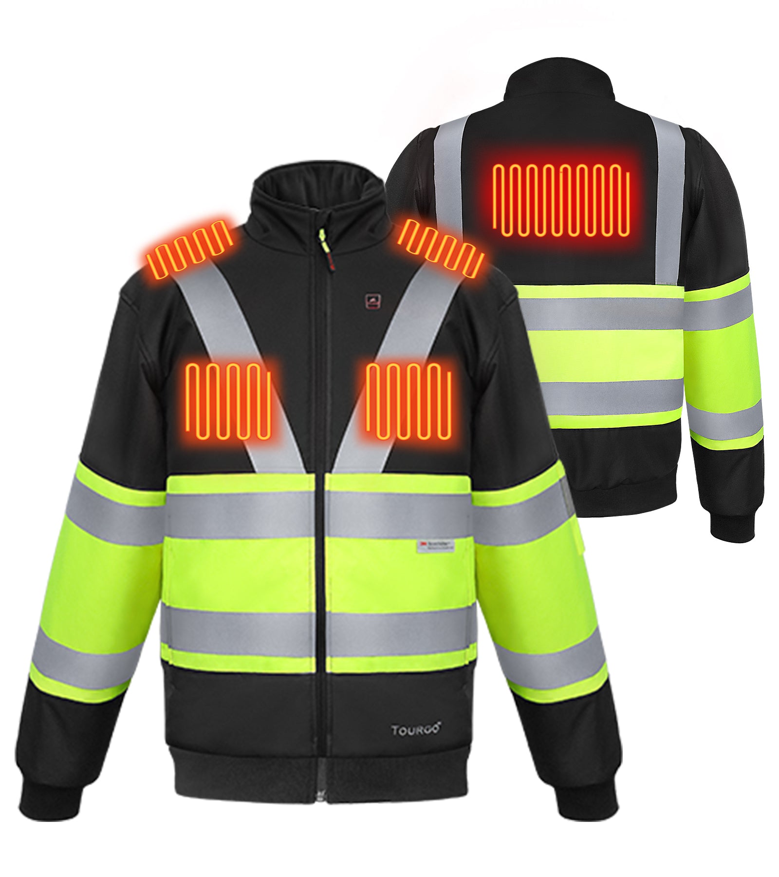 Mens Heated Safety Jacket with 12V 16000mAh Battery Pack,5 Heating Zones,Hi-Vis Waterproof Heated Safety Bomber Jacket